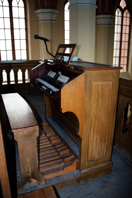 Stół gry wolnostojący, na osi prospektu, przodem do ołtarza głównego. 11 głosów podzielonych pomiędzy jeden manuał (9) o zakresie C-f3 i pedał (2) o zakresie C-d1.