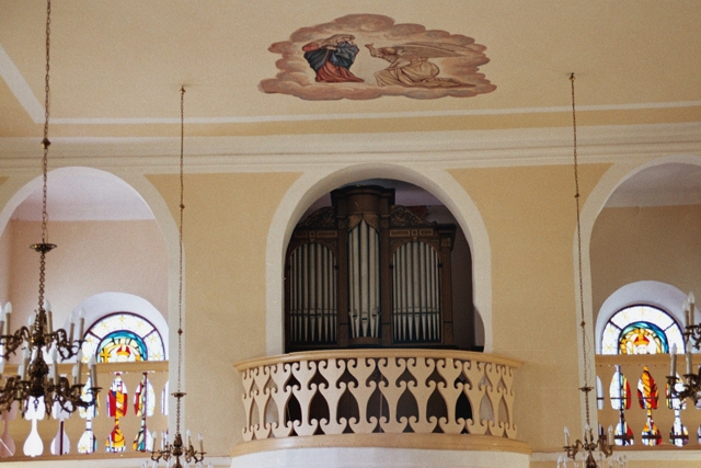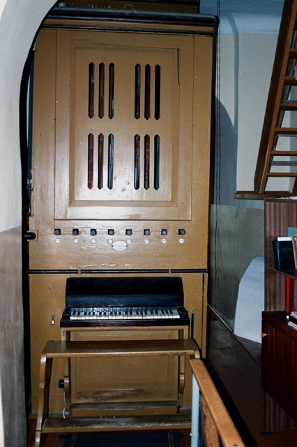 Stół gry wbudowany w prawy bok szafy organowej. Pozytyw o 8 głosach. Klawiatura o zakresie C-c3.
