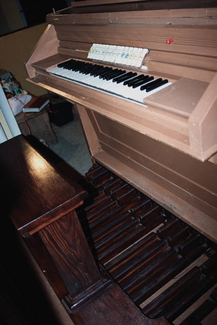 Stół gry wolnostojący, na osi prospektu, przodem do ołtarza głównego. 9 głosów podzielonych pomiędzy jeden manuał (7) o zakresie C-f3 i pedał (2) o zakresie C-d1.