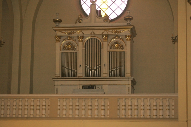 Stół gry wolnostojący, na osi prospektu, przodem do ołtarza głównego. 10 głosów podzielonych pomiędzy jeden manuał (7) o zakresie C-f3 i pedał (3) o zakresie C-c1.