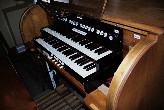 Urządzenia pomocnicze: Piano, Mezzoforte, Forte, Tutti, Połączenia: Pedal Koppel I, Pedal Koppel II, maual Koppel II/I, Sup.-Oct. Koppel II/I, Tremulant.