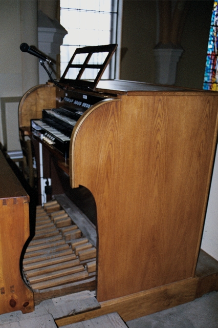 Stół gry wolnostojący, na osi prospektu, przodem do ołtarza głównego. 16 głosów podzielonych pomiędzy dwa manuały (8, 6) o zakresie C-f3 i pedał (2) o zakresie C-d1.
