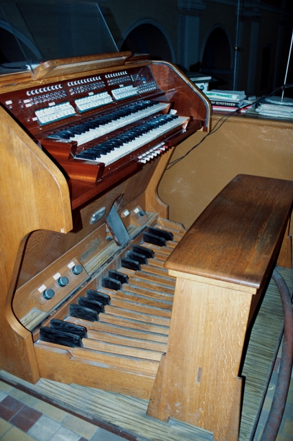 Stół gry wolnostojący, ruchomy. 22 głosy podzielone pomiędzy dwa manuały (I-8, II-8) o zakresie C-a3 i pedał (6) o zakresie C-f1.