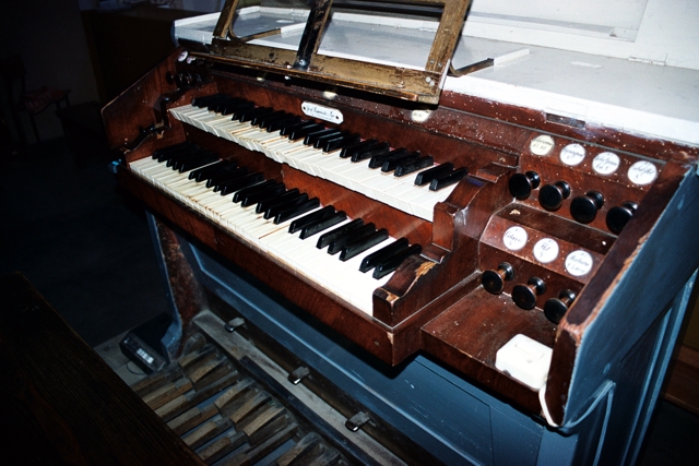 Stół gry wolnostojący, na osi prospektu, przodem do ołtarza głównego. 12 głosów podzielonych pomiędzy dwa manuały (I-6, II-3) o zakresie C-f3 i pedał (3) o zakresie C-d1 (brak klawisza d1).