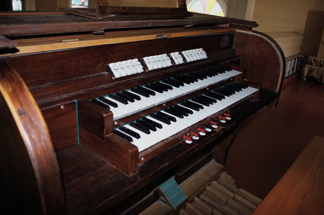 | Manuał I Pryncypał 8’ Bourdon 8’ Gamba 8’ Oktawa 4’ | Manuał II Salicet 8’ Flet harm. 8’ Gedakt 8’ Aeolina 8’ | Pedał Subbas 16’ Cello 8’ |