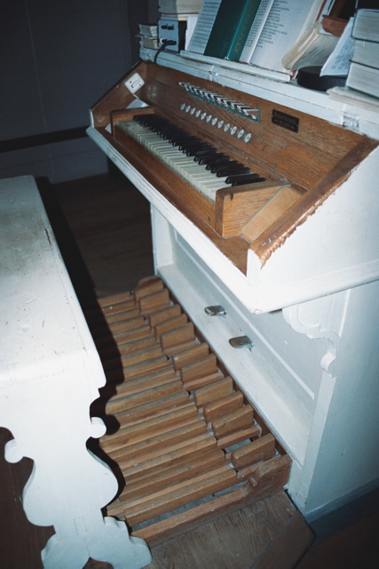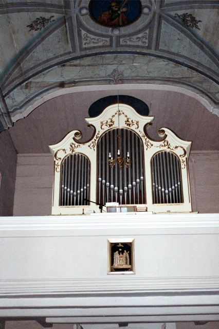 Stół gry wolnostojący, na osi prospektu, przodem do ołtarza głównego. 8 głosów podzielonych pomiędzy jeden manuał (7) o zakresie C-f3 i pedał (1) o zakresie C-d1.