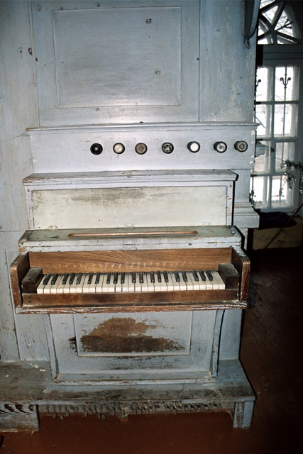 Stół gry wmontowany w lewy bok szafy organowej. 7 głosów podzielonych pomiędzy jeden manuał (6) o zakresie C-c3 i pedał (1) o zakresie C-c1.