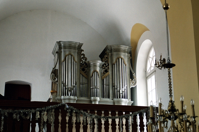 Instrument usytuowany na chórze muzycznym (obecnie niecentralnie, przy północnej ścianie kościoła).