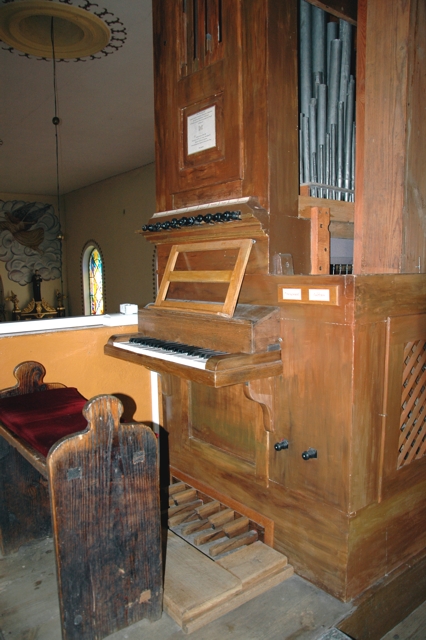 Stół gry wbudowany w prawy bok szafy organowej. 11 głosów podzielonych pomiędzy jeden manuał (9) o zakresie CFDGEABHc-c3 i pedał (2) o zakresie C-H (o niespotykanej konstrukcji klawiatury).