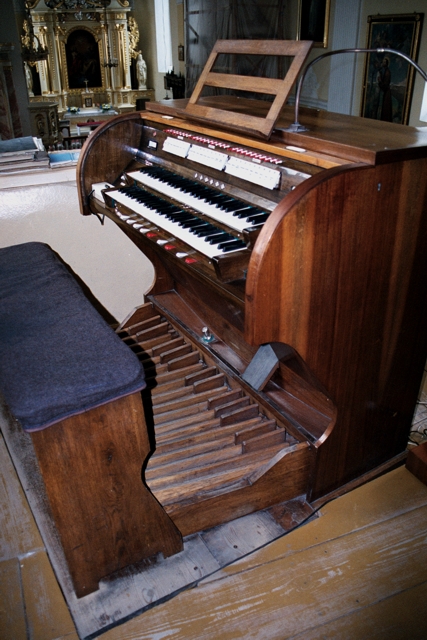 | Manuał I Pryncypał 8’ Holflet 8’ Oktawa 4’ Bachflet 4’ Flet leśny 2’ Mixtura 4 x | Manuał II Bourdon 8’ Salicet 8’ Vox coelestis 8’ Pryncypał 4’ Rurflet 4’ Nasard 2 2/3’ Oktawa 2’ Tercja 1 3/5’ Szarf 4 x | Pedał Subbas 16’ Pryncypałbas 8’ Fletbas 8’ Oktawbas 4’ Kornetbas 3 x |