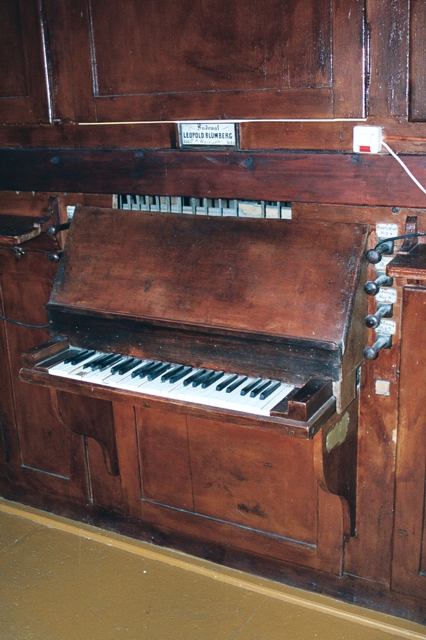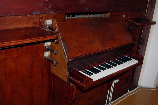 Kontuar wbudowany w tylną ścianę szafy organowej. Pozytyw o 8 głosach i zakresie klawiatury C-c3.