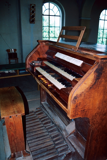 Stół gry wolnostojący, na osi prospektu, przodem do ołtarza głównego. 13 głosów podzielonych pomiędzy dwa manuały (I-5, II-5) o zakresie C-a3 i pedał (3) o zakresie C-d1.