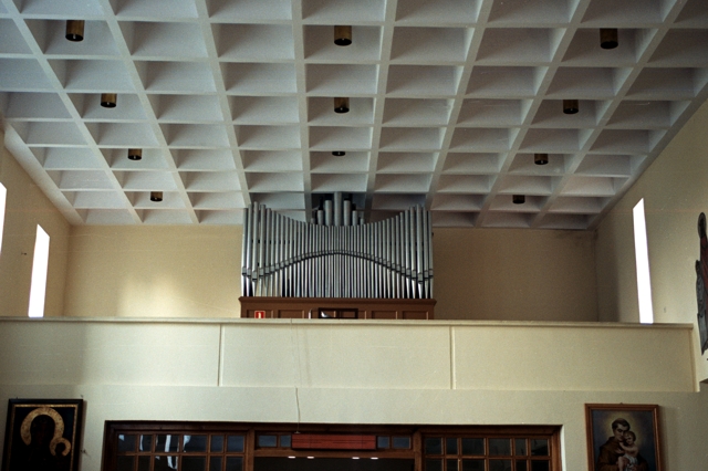 | Manuał I Pryncypał 8’ Gamba 8’ Flet 8’ Oktawa 4’ Róg-Kozi 4’ Mixtura 3 rz. | Manuał II Eolina 8’ Kryty 8’ Róg nocny 4’ Flet leśny 2’ Seskwialtera 2 rz. | Pedał Subbas 16’ Cello 8’ |