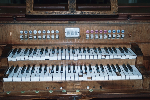 | Manuał I Bourdon 16’ Pryncypał 8’ Viola di Gamba 8’ Dolce 8’ Portunal-flet 8’ Octava 4’ Dulcyan 4’ Mixtura 2’ 4 chóry | Manuał II Pryncypał 8’ Salicyonał 8’ Voxcelest 8’ Aeolina 8’ Gedect 8’ * Quintadena 4’ * na tabliczce Rurflet 4’ | Pedał Violonbas 16’ Subbas 16’ Pryncypał 8’ Octavbas 8’ |