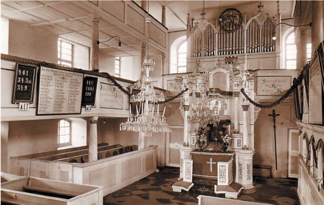 Kościół uległ całkowitemu spaleniu w 1956 roku.