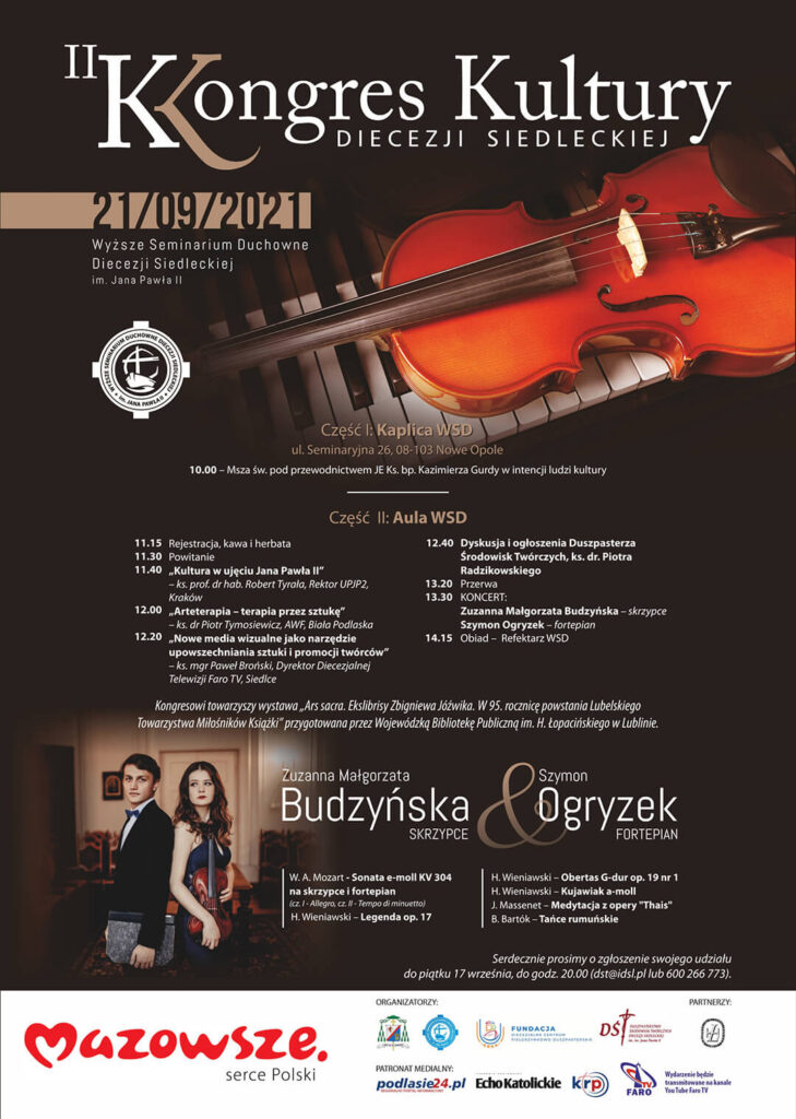 Dnia 21 września br. w gmachu Wyższego Seminarium Duchownego w Nowym Opolu odbędzie się II Kongres Kultury Diecezji Siedleckiej, zorganizowany przez Duszpasterstwo Środowisk Twórczych Diecezji Siedleckiej.
