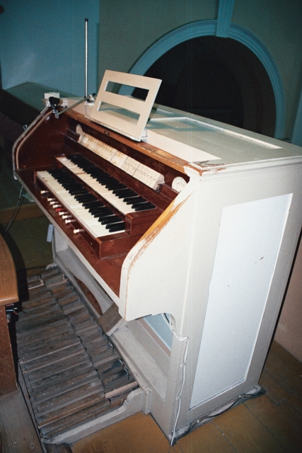 | Manuał I Pryncypał 8 st. Burdon 16 st. Flet amab. 8 st. Octawa 4 st. Salcjon 8 st. Spicflet 4 st. Rurflet 4 st. Mixtura 4 ch. | Manuał II Pryncypał 8 st. Gamba 8 st. Aeolina 8 st. Vox celestis 8 st. Flet kryty 8 st. Flet harm. 4 st. Flet dolce 4 st. Nasard 2 2/3 st. | Pedał Violonbas 16 st. Subbas 16 st. Flet 8 st. Czello 8 st. |