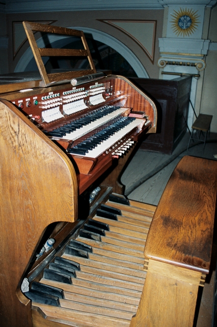 Stół gry wolnostojący, na osi prospektu, przodem do ołtarza głównego. 10 głosów podzielonych pomiędzy jeden manuał (I-8, II-8) o zakresie C-a3 i pedał (5) o zakresie C-g1.